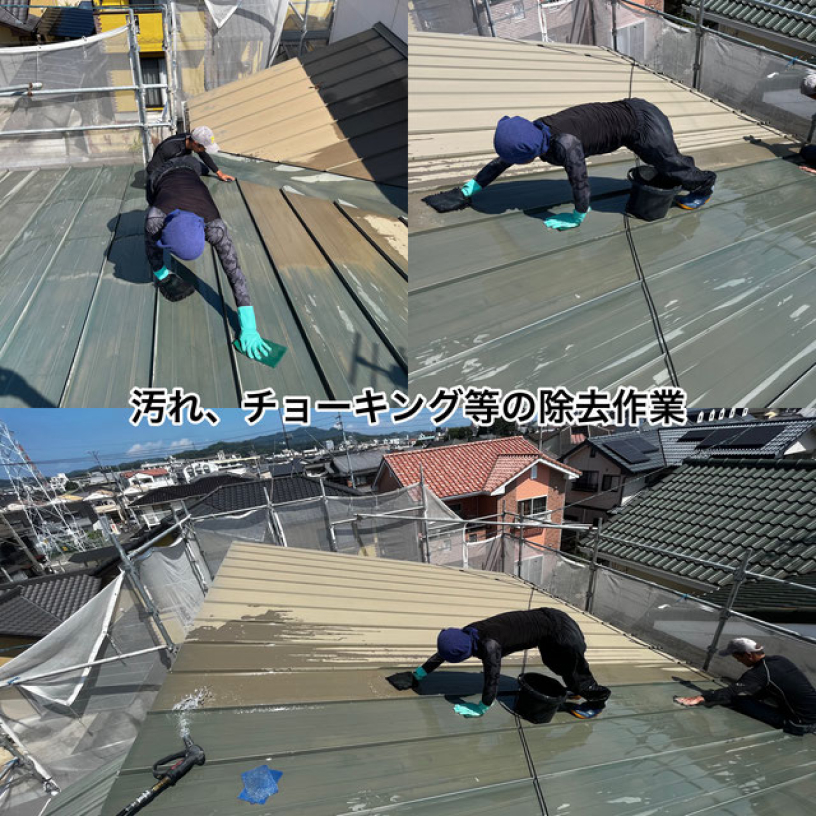 高圧洗浄・ケレン(研磨)・シーリング補修など、塗装前の下地調整と呼ばれる工程が仕上がりの品質に大きくかかわりますので、時間を惜しまない丁寧な下地調整にこだわっています。